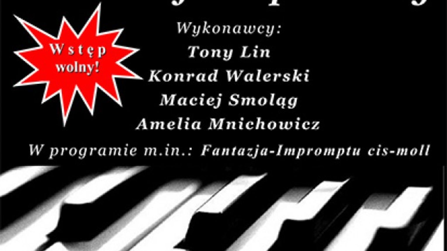 Fryderyk Chopin nad Odrą Pod takim hasłem już w nadchodzącą sobotę 1. marca odbędzie się koncert fortepianowy z okazji 204 rocznicy urodzin wybitnego kompozytora Fryderyka Chopina. W słubickiej auli Collegium Polonicum o godzinie 17 do fortepianu zasiądą: odnoszący na całym świecie sukcesy pianista Tony Lin, student Uniwersytetu Europejskiego Viadrina Konrad Walerski oraz uczniowie Państwowej Szkoły Muzycznej w Słubicach Maciej Smoląg i Amelia Mnichowicz. W programie oprócz utworów Chopina także dzieła Schuberta, Prokofieva i Bacha-Busoniego. Wstęp wolny. Serdecznie zapraszamy!